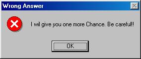 I will give you one more Chance. Be careful!!(틀렸다. 한 번 더 기회를 주겠다. 조심해라)"을 출력한 후