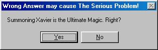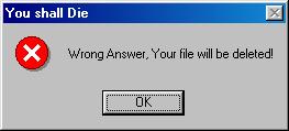 "아니오"를 선택하면 "Wrong Answer, Your file will be deleted!""You are SOB, too"(틀렸다, 너의 파일은 삭제될 것이다. 너도 역시 ○○○(욕설)다)를 출력하고