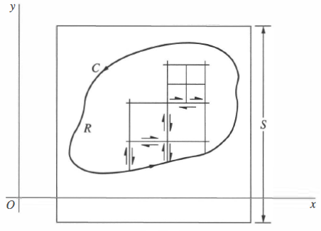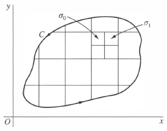 그러면 정사각형 모양의 유한개의 닫힌 부분 영역을 형성하고, 여기서 \(R\)의 각 점은 그런 부분영역 중 적어도 하나에 속하고 각 부분영역은 \(R\)의 점들을 포함한다. 이러한 정사각형 모양의 영역을 정사각형이라고 한다. 따라서 정사각형은 경계와 그 내부의 점들(내부영역)을 합친 것이다.