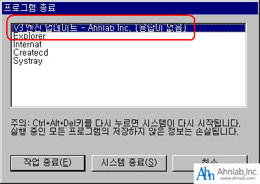 실행된 트로이목마는 '응답없음' 상태가 되기 때문에 Ctrl+Alt+Delete를 눌러 강제로 종료시켜야 한다.