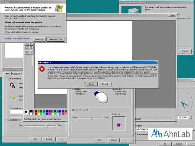 그 결과로 재부팅하면 바탕화면에 마우스 포인터만 나타나게 되어 정상적인 윈도우 사용에 지장이 발생한다.