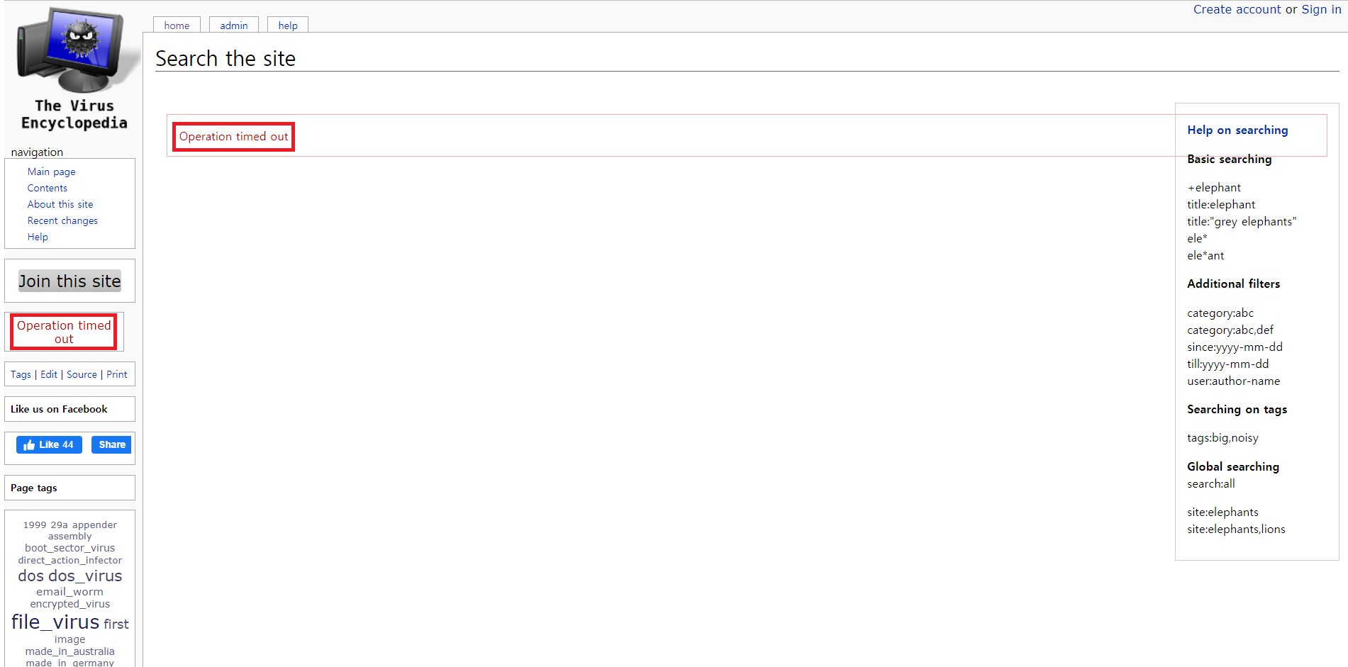* Virus Encyclopedia(virus.wikidot.com)에 이 바이러스를 검색했는데 "Operation timed out"가 뜨고 아무것도 안 나왔다.