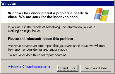 Windows X found serious error