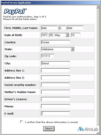 귀하의 개인 프로필을 업데이트하고 페이팔 서비스를 계속 이용하려면 이메일에 첨부된 실행파일을 실행시켜야 합니다. 실행시킨 후 지침을 따르십시오.