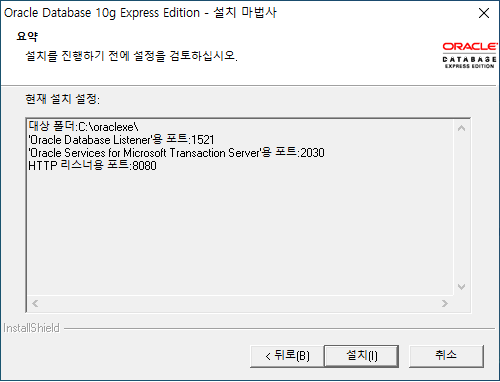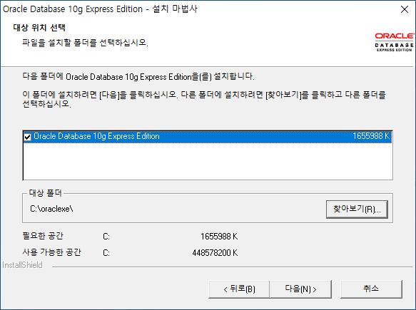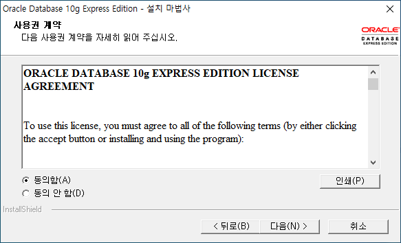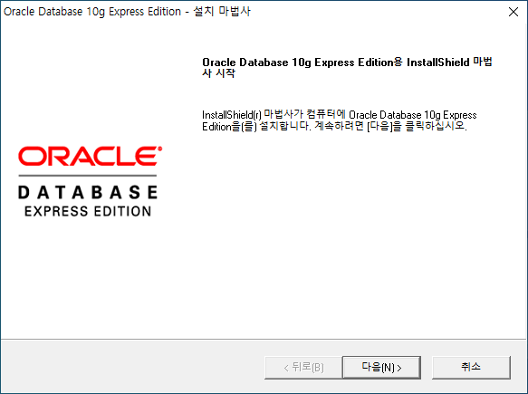 'Oracle Database 10g Express Edition'에 표시하고 [다음]을 누른다.