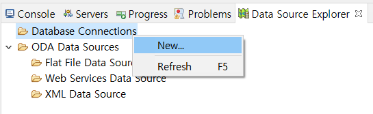 그러면 (보통 이클립스 밑부분에) Data Source Explorer이 생성된다. 마우스를 Database Connections에 갖다댄 다음