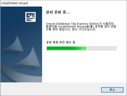 설치파일을 실행하면 이 화면이 나타난다. 초록색이 막대 전체를 차지할 때까지 기다린다.