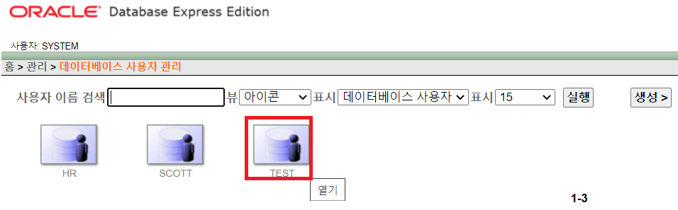 SQL>표시가 떴을 때 create user test identified by test;를 입력한다. 그러면