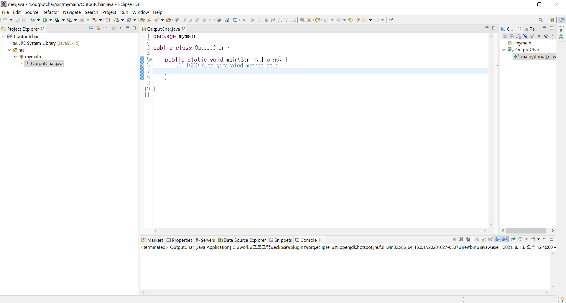 그러면 위 화면처럼 1.outputchar이라는 제목의 프로젝트가 만들어졌다.