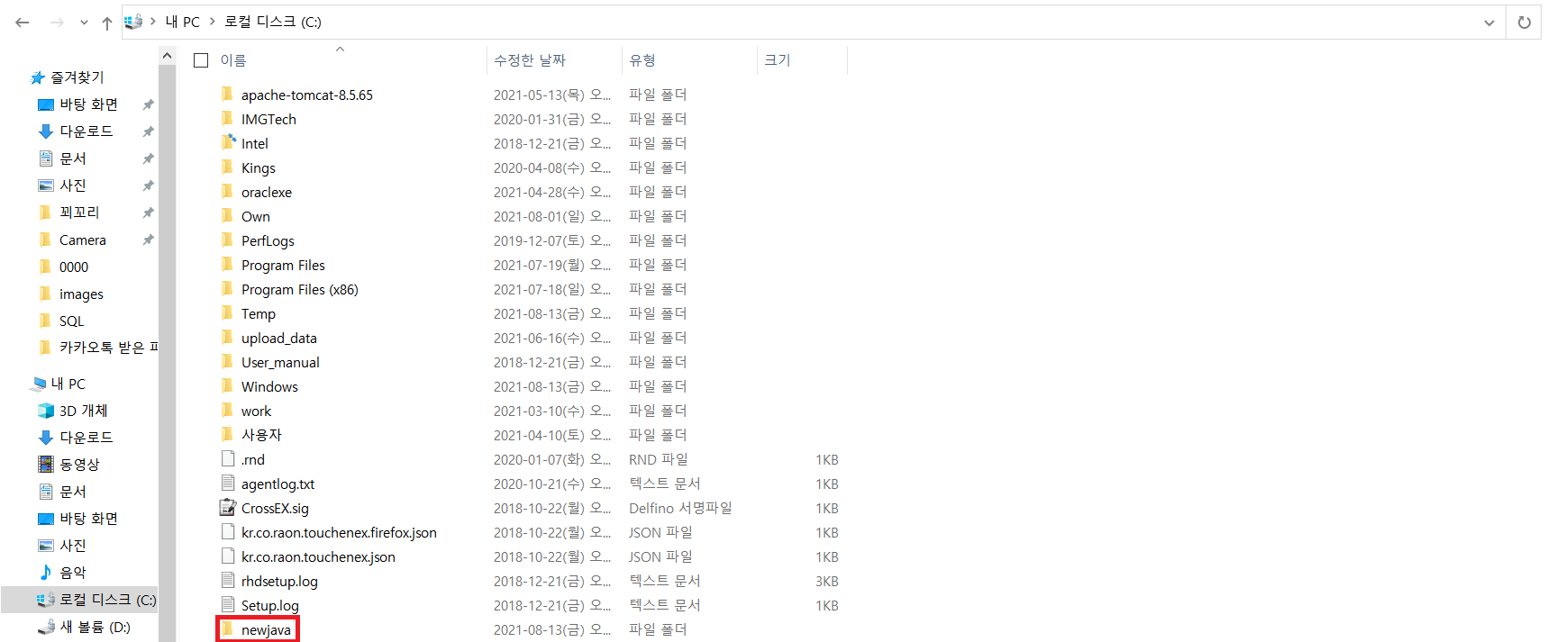 그러기 위해 C드라이브에 newjava라는 이름의 폴더를 만든다.