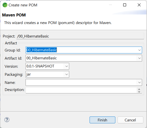Finish를 눌렀다면 'pom.xml' 파일이 생길 것이다.