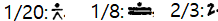 파피루스의 신관문자의 경우, 달걀 모양은 점으로 바뀌고, 대응하는 정수(분모) 위에 놓았다.