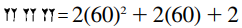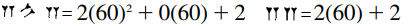 222는 10진법으로 \(2\times100+2\times10+2\)이나 바빌로니아에서는 다음과 같이 60진법의 수를 나타낸다.