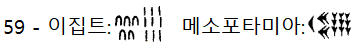 이집트 신성문자와 마찬가지로 바빌로니아(메소포타미아) 쐐기문자 기수법은 1과 10을 되풀이하여 나타냈다. 예를들어 59를 이집트와 메소포타미아에서는 각각 다음과 같이 나타낸다.