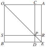 따라서 \(x\)를 작도할 때는 먼저 \(b=OB\), \(c=OC\)인 직사각형 \(OCDB\)를 작도하고, 선분 \(OC\)위에 \(OA=a\)가 되도록 선분 \(OC\)의 연장선 위에 점 \(A\)를 택한다. 여기서 정사각형 \(OAEB\)를 완성시키고 빗변 \(OE\)를 그어 선분 \(CD\)와 만나는 점을 \(P\)라고 한다. 여기서 직사각형 \(OARS\)와 \(OCDB\)는 넓이가 같으므로 선분 \(CP\)가 구하는 선분 \(x\)이다.