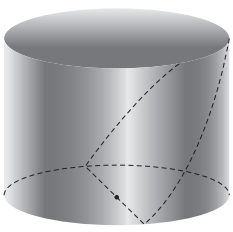 먼저 \(O\)가 중심이고 \(AC\)가 지름인 원 \(AQDCP\)를 구의 단면, \(AUV\)를 \(AC\)가 축이고 \(UV\)가 밑면의 지름인 직원뿔의 단면이라 하자. 또 \(IJVU\)를 \(AC\)가 축이고 \(UV=IJ\)가 지름인 직원기둥의 단면, \(AH=AC\)로 한다. 그리고 축 \(AC\)위의 임의의 점 \(S\)를 지나 \(AC\)에 수직인 평면을 생각할 때 그 평면이 원뿔, 구, 원기둥을 자른 면은 각각 반지름이 \(r_{1}=SR\), \(r_{2}=SP\), \(r_{3}=SN\)인 원으로 될 것이다. 그렇게 만들어진 원의 넓이를 \(A_{1},\,A_{2},\,A_{3}\)으로 할 때, 아르키메데스는 \(A_{1},\,A_{2}\)를 옮겨 중심이 \(H\)가 되도록 놓으면 본래 자리에 있던 \(A_{3}\)과 \(A\)를 받침점으로 하여 정확히 균형을 이루는 것을 발견한 것이다.