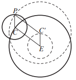 이심원 체계에서는 행성 \(P\)는 대원 위를 일정하게 움직이고, 대원의 중심 \(C'\)은 그것에 대응하며 \(E\)를 중심으로 하는 작은 원 위를 움직인다. \(PC=C'E\)라 하면 두 기하학적 체계는 동치이다.