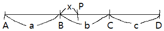 직선 위에 네 점 \(A,\,B,\,C,\,D\)가 주어질 때 같은 직선 위의 다섯번째 점 \(P\)를 \(AP\)와 \(CP\)가 만드는 직사각형과 \(BP\)와 \(DP\)가 만드는 직사각형이 주어진 비(\(AP\cdot CP=\lambda BP\cdot DP\))가 되도록 결정하라는 문제이다.
