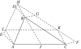 \(ABC\)를 임의의 삼각형으로 하고 \(ABDE\)와 \(CBFG\)를 세 변 가운데 두 변 위에 만든 임의의 평행사변형이라 할 때 파푸스는 그 두 평행사변형의 넓이의 합과 같은 넓이인 세 번째 평행사변형 \(ACKL\)을 변 \(AC\)위에 작도했다. 그것은 두 선분 \(FG\)와 \(ED\)를 연장해 만나는 점을 \(H\)라 하고 두 점 \(H,\,B\)를 잇는다. 선분 \(HB\)의 연장선과 변 \(AC\)를 만나는 점을 \(J\)라 하고, 마지막으로 선본 \(HBJ\)와 평행하게 선분 \(AL\)과 \(CK\)를 그으면 쉽게 마무리된다.