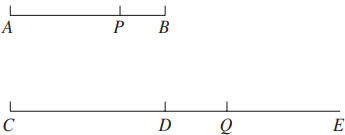 위에 주어신 선분을 \(AB\), 반직선을 \(CDE\cdots\)라 하자. 동점 \(P\)는 \(A\)를 출발하여 \(PB\)의 길이에 비례하여 감소하는 속도로 \(AB\)위를 움직이고 그와 동시에 점 \(Q\)는 \(C\)를 출발하여 \(P\)가 처음 움직이기 시작할 때의 속도로 직선 \(CDE\)위를 움직인다고 하자. 여기서 네이피어는 \(CQ\)를 \(PB\)의 로그라고 불렀다. 이 기하학적 정의에 의한 로그는 앞에서 정의한 로그와 일치한다.