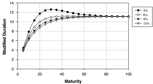 수익률이 높을수록 투자는 더 빨리 상환되므로 수정 듀레이션은 더 낮아진다.