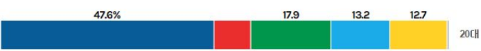 위 그림은 18대 대선에서 20대의 지지결과이다. 여기서 파란색은 문재인, 빨간색은 홍준표, 초록색은 안철수, 하늘색은 유승민, 노란색은 심상정, 회색은 기타이다.