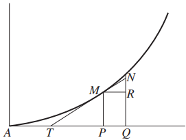 많은 유명한 방법과 진부한 방법 뒤에 이것이 유익한지 어떤지 모르지만 우리가 자주 접선을 구할 때 쓰는 잘 알려진 방법을 부족의 형태로 덧붙여둔다. 그러나 내가 그렇게 하는 것은 친구의 충고에 따른 것이다(친구: 뉴턴). 더욱이 기꺼이 그렇게 하기로 한 것은 그 방법이 내가 말한 방법보다도 더 유익하고 더욱 일반적이라고 생각되기 때문이다. 배로는 미분에서 이용되는 방법과 실질적으로 같은 접선을 구하는 방법을 사용하고 있다. 페르마의 방법과 거의 같으나 \(E\) 대신 오늘날 쓰이는 \(\Delta x,\,\Delta y\)를 사용했다. 배로는 그 방법을 다음과 같이 설명한다.